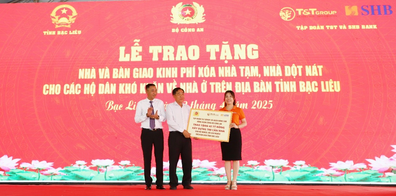 Mới đây nhất, T&T Group và Ngân hàng SHB đã đồng hành cùng Bộ Công an trao tặng kinh phí xây dựng 700 căn nhà trên địa bàn tỉnh Bạc Liêu, và hiện đã bàn giao nhà mới cho người dân địa phương